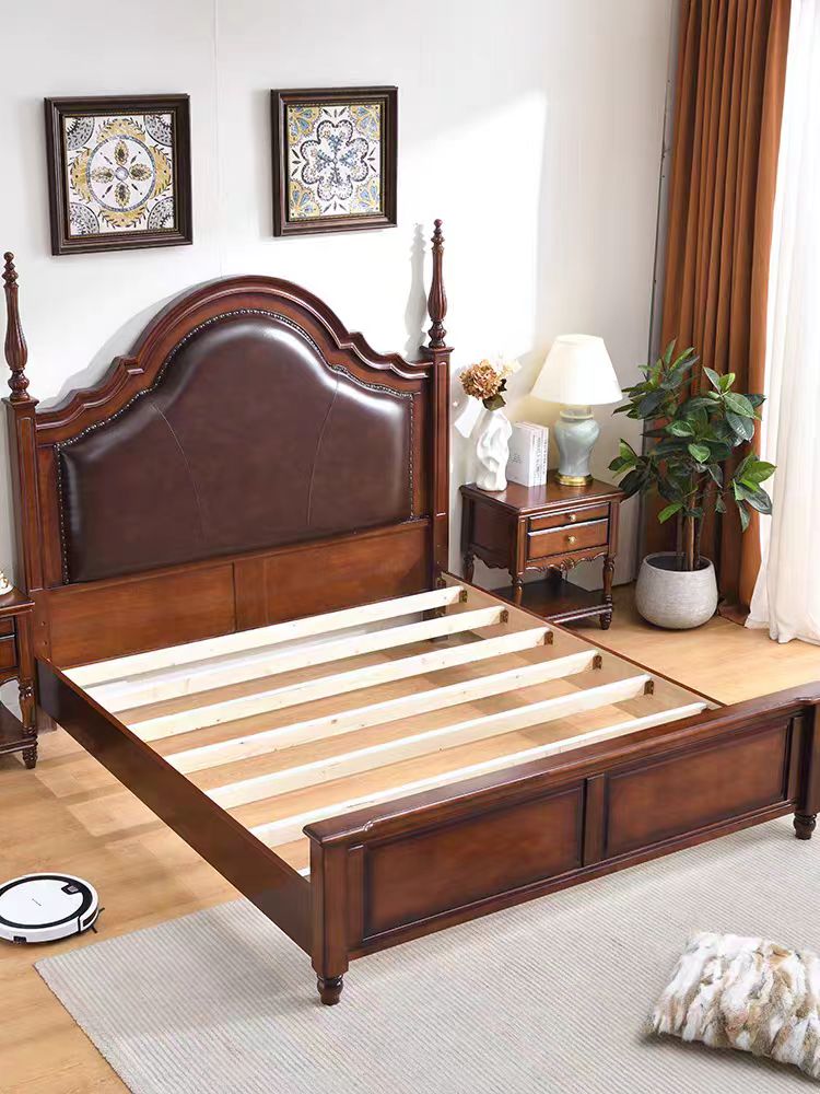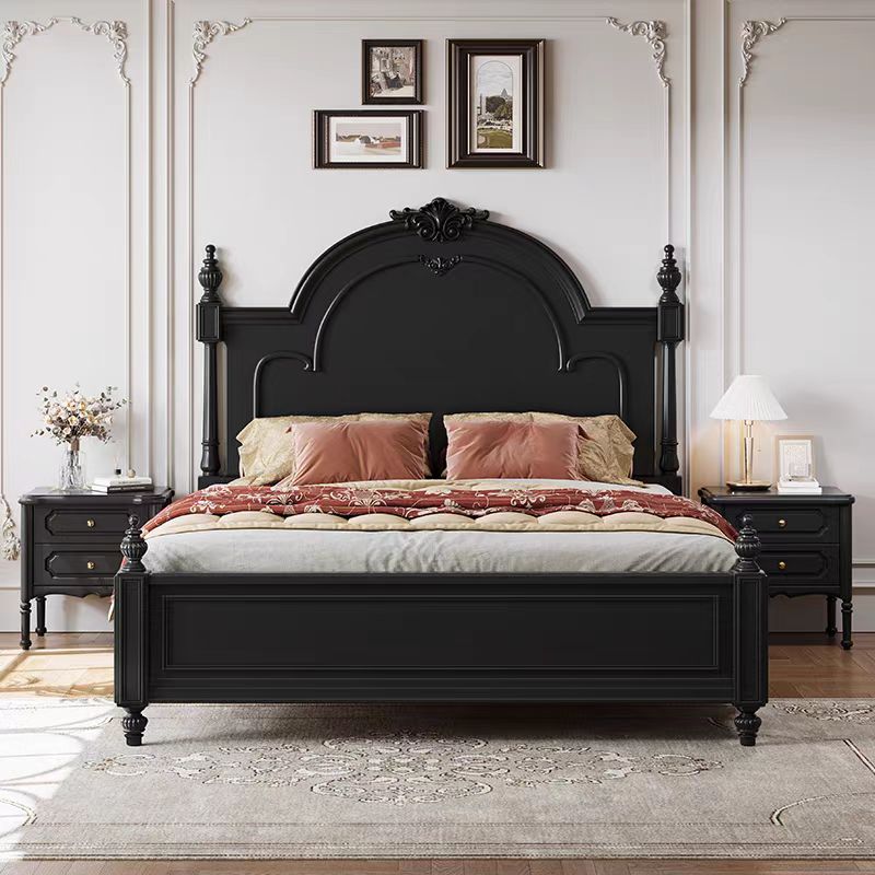 Custom Solid Wood Vintage Headboard Bed – Hotel & High-End Residential Project Furnishing