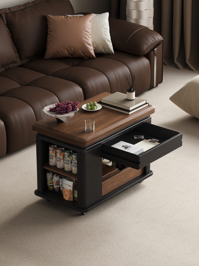 Coffee Table/Small Side Table – Extendable Wooden Coffee Table with Storage & Mobile Wheels (80/120cm × 45cm)