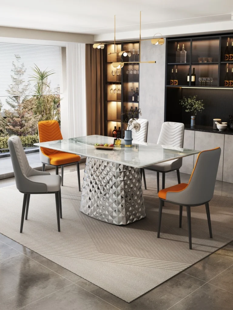 Dining Table – Contemporary Sintered Stone Dining Set with Textured Base & Padded Chairs (1.4/1.6/1.8m)