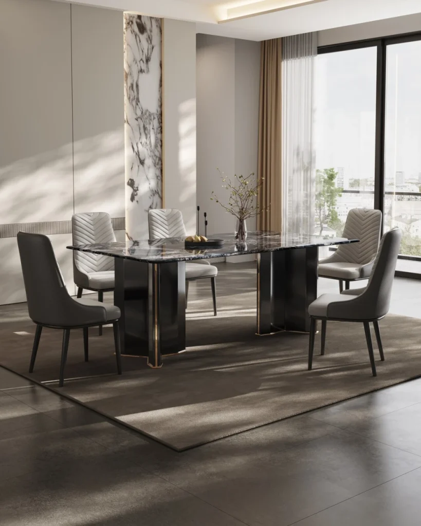 Dining Table – Modern Rock Slab Dining Set with Gold Accent Metal Legs (1.4/1.6/1.8m)