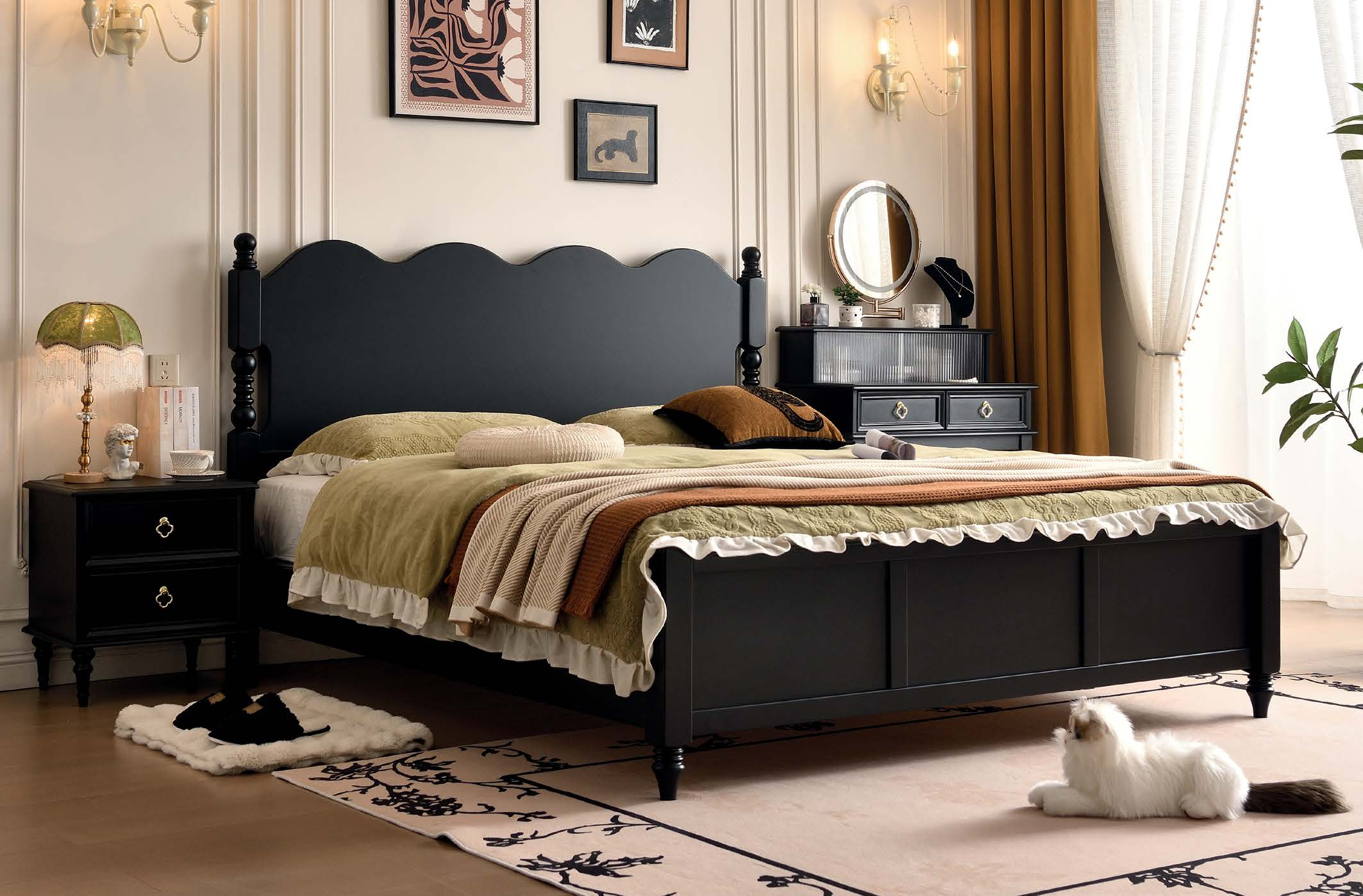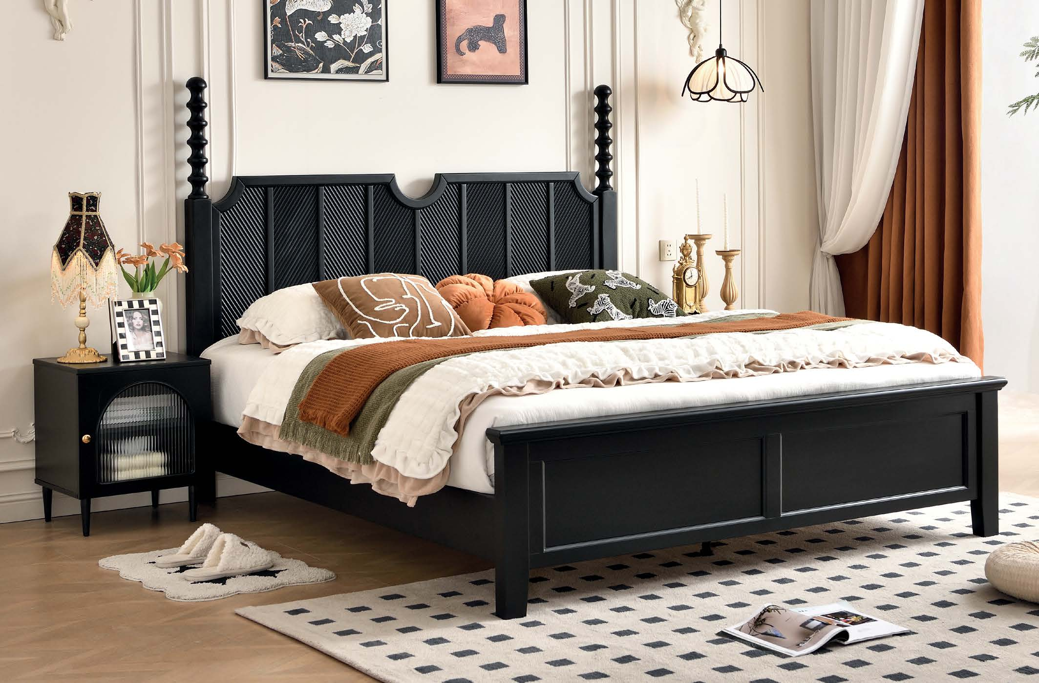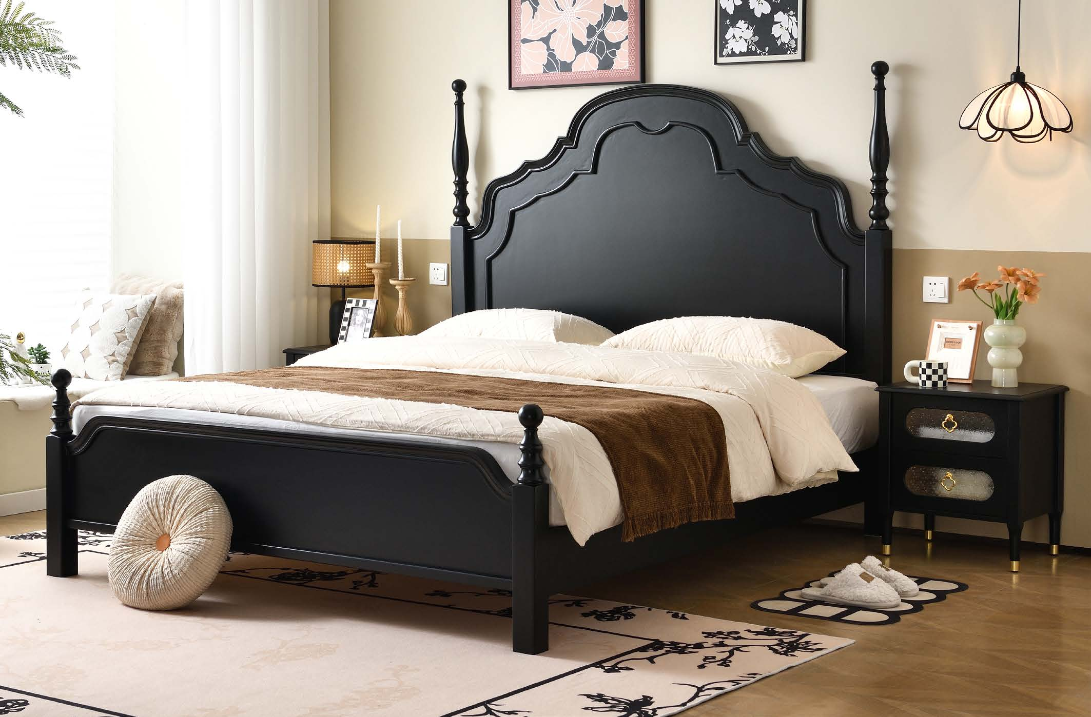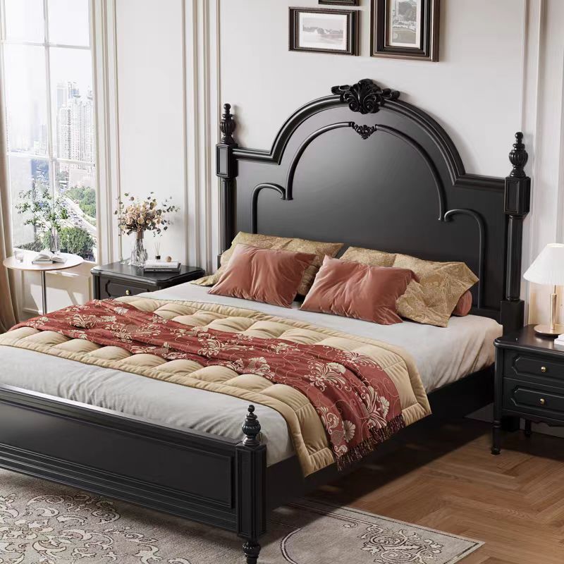 Custom Black Retro Curved Wooden Headboard Bed – Bulk Customizable for Boutique Hotel Projects