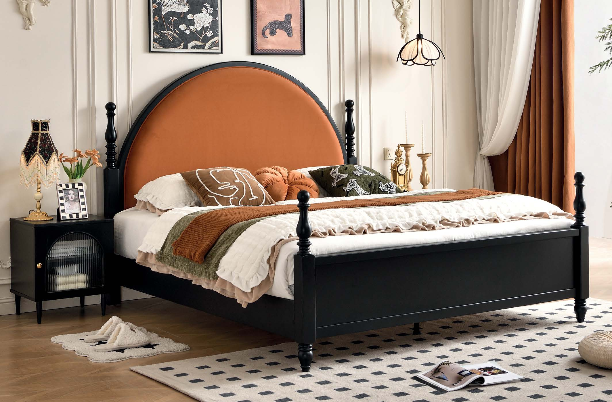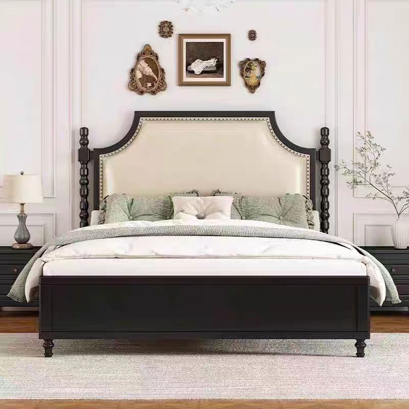Custom Classic Solid Wood Headboard Bed with Upholstery – Bulk Order for Hotel Chain Furnishing