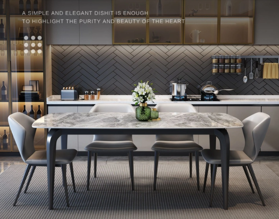 Dining Table- Minimalist Sintered Stone Dining Set with Slim Metal Legs (1.4/1.6/1.8m)